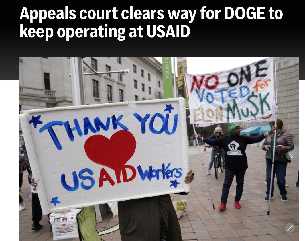 Судовий розгляд з цього питання завершився в п’ятницю, коли апеляційний суд дозволив Ілону Маску продовжити скорочення в USAID, скасувавши попередню заборону суду нижчої інстанції. Обмеження було накладено після заяви Маска про те, що він «згодував USAID в подрібнювач деревини», що суд вважав ознакою упередженості мільярдера. Однак апеляція зняла блокування, дозволивши адміністрації продовжити ліквідацію агентства.