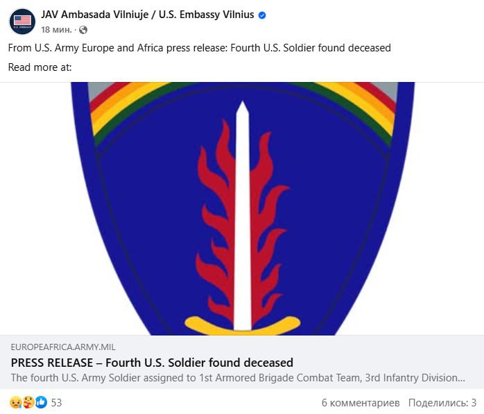 «Перш за все, ми висловлюємо співчуття рідним наших солдат. Не можна недооцінювати підтримку наших литовських союзників. Ми покладалися на них, і вони разом з польськими та естонськими союзниками, а також нашими моряками, льотчиками та фахівцями з інженерного корпусу допомогли нам знайти та повернути наших солдат додому. Це трагічна подія, але вона підкреслює, що значить мати союзників і друзів», – зазначив генерал Крістофер Донахью, командувач армією США в Європі й Африці.