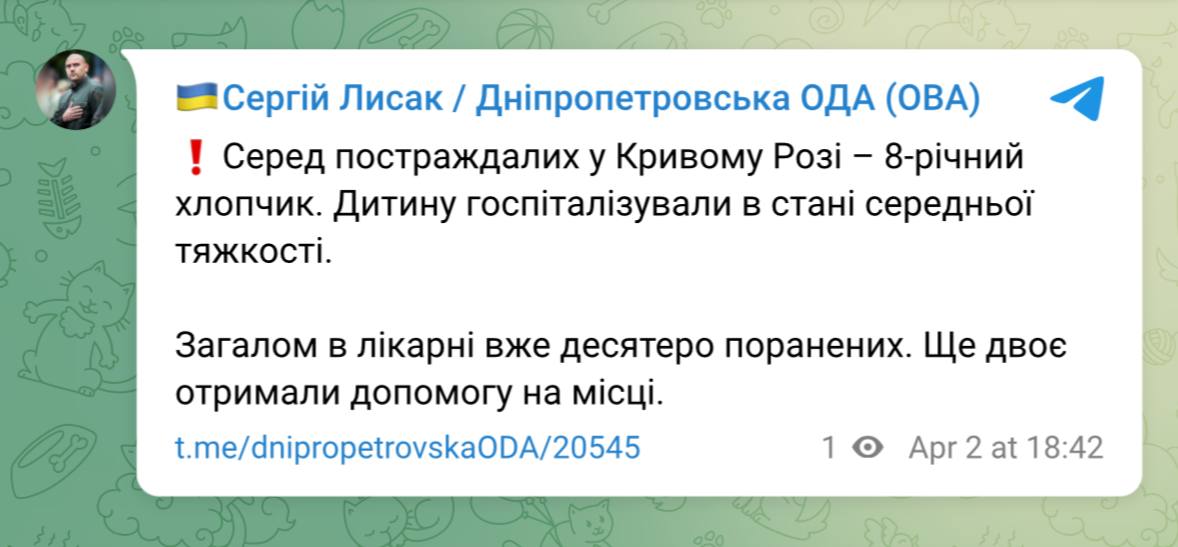 Ракетний удар по Кривому Рогу: серед поранених – діти, опубліковано фото наслідків