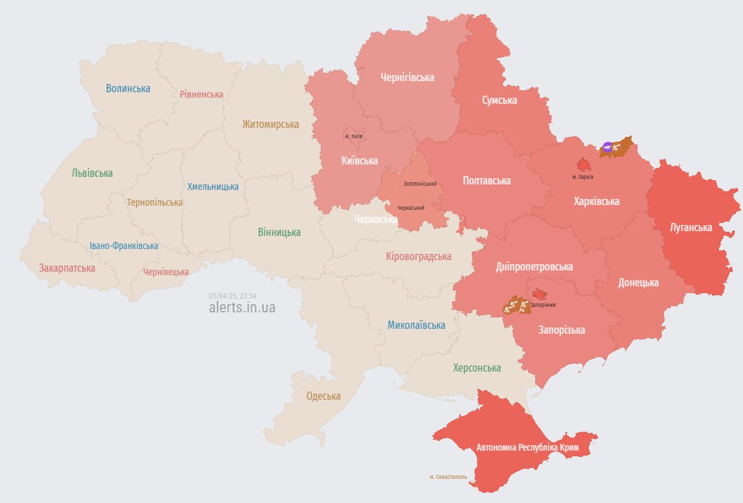 У Києві та ряді інших областей оголошено повітряну тривогу через загрозу атаки ворожими безпілотними літальними апаратами "Шахед".