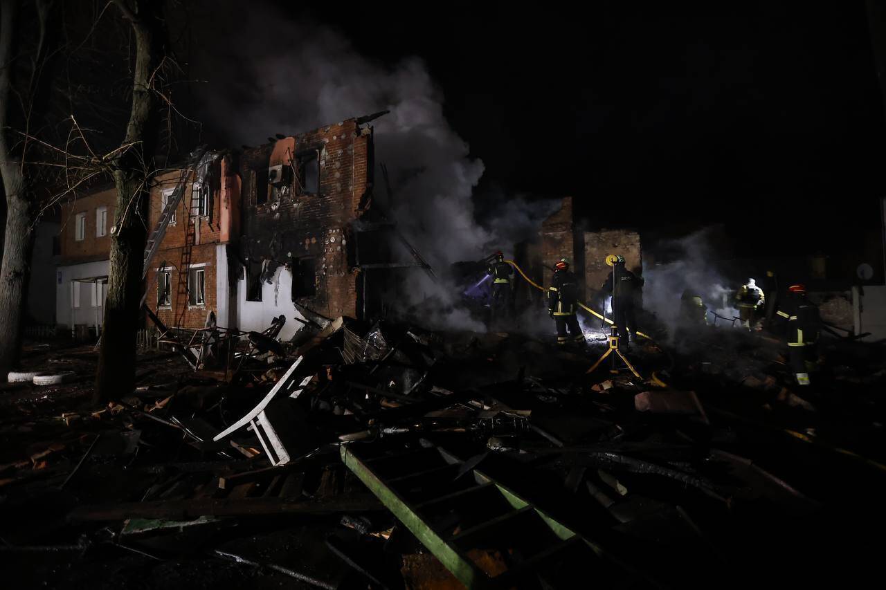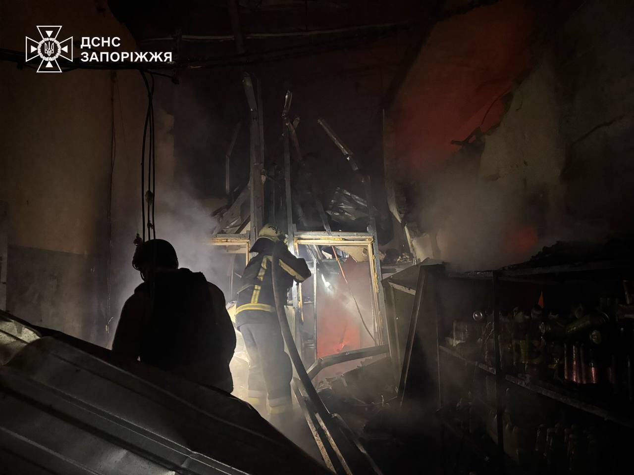 Окупанти запустили щонайменше сім дронів-камікадзе. Один із них влучив у магазин, спричинивши пожежу на площі 100 кв. м.