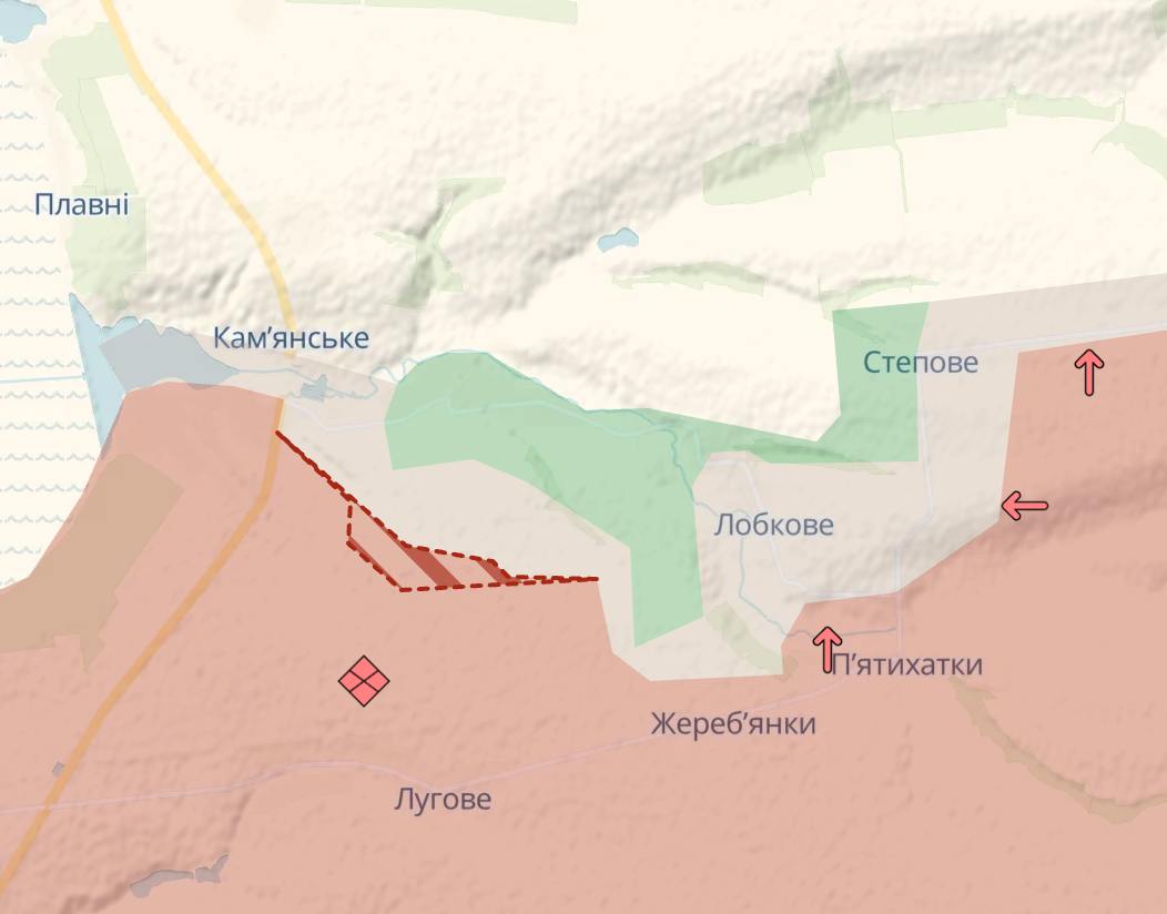 Окупанти просунулися на південь від Кам’янського. Напередодні російські війська також відзначилися просуванням у районі П’ятихаток, що на Оріхівському напрямку. Це свідчить про поступове, хоч і повільне, розширення зони контролю РФ у цій частині фронту.