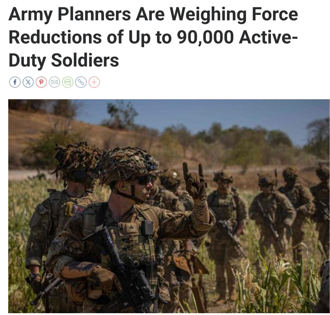 Армія США розглядає можливість масштабного скорочення особового складу на 90 000 осіб, що знизить загальну кількість військовослужбовців до 360 000.