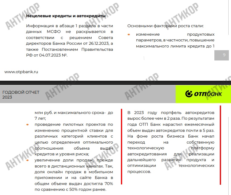 Наприклад, за даними звіту російського відділення банку за 2023 році, портфель автокредитів зріс більш ніж у 2 рази. За результатами року «ОТП Банк» наростив щомісячний обсяг видачі автокредитів майже в 5 разів.