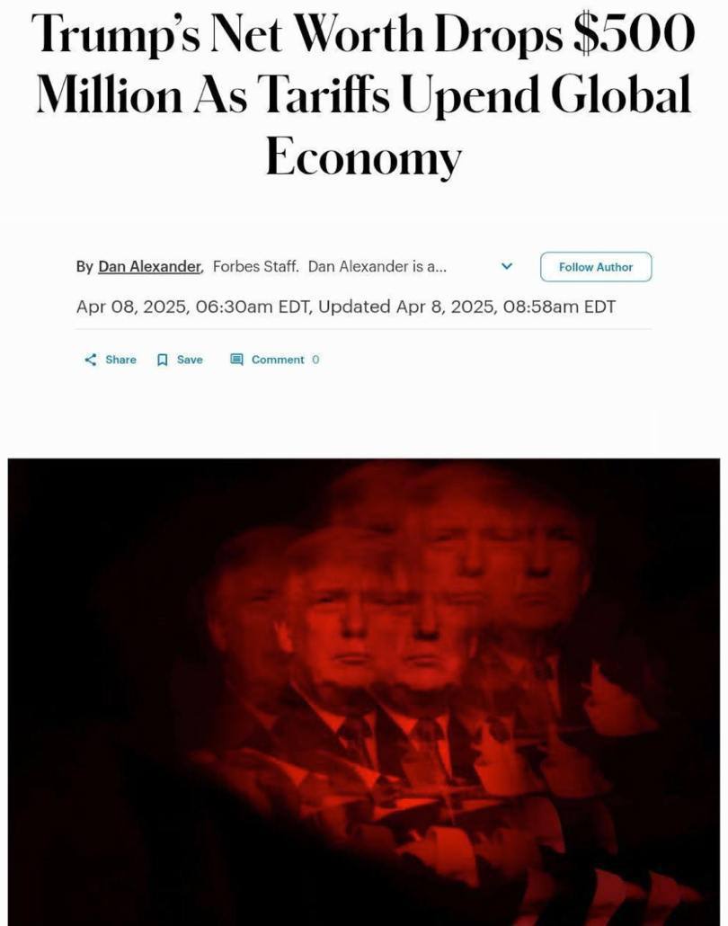 Майно Дональда Трампа зменшилося на 500 млн доларів через запроваджені ним всеосяжні мита, що призвели до падіння світових ринків.