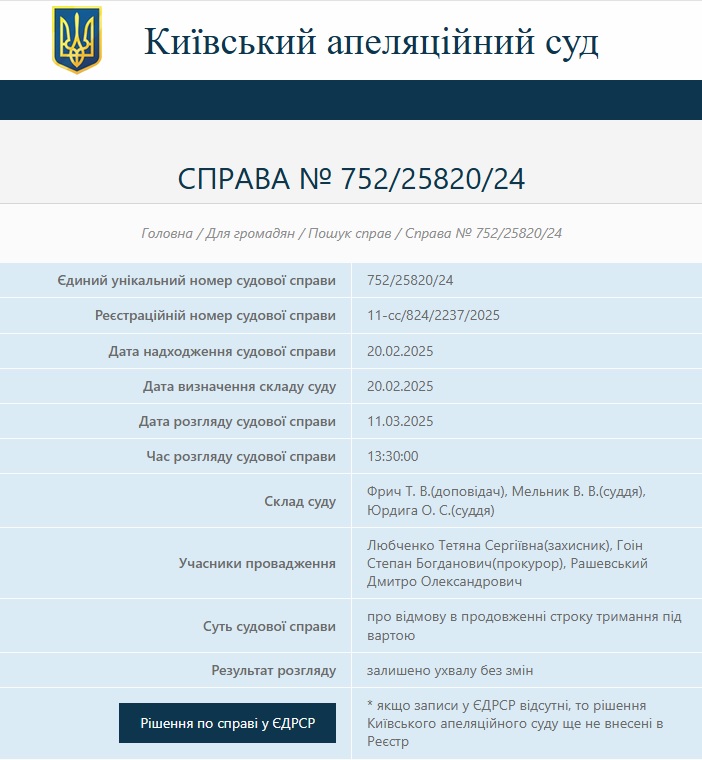 Відповідне рішення, яке було ухвалене 19 лютого 2025 року, встояло в апеляційній інстанції.