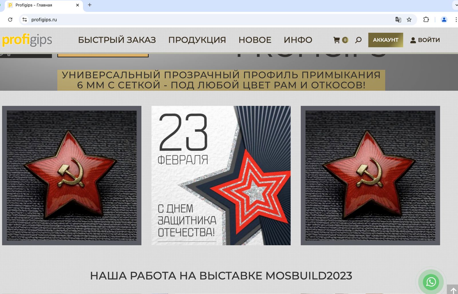 Однією з причин, яка суттєво підвищила градус загального обурення став нещодавній контент офіційного російського сайту ProfiGips — де були опубліковані привітання з 23 лютого з символікою часів СРСР, включаючи червоні зірки та зображення серпа з молотом.