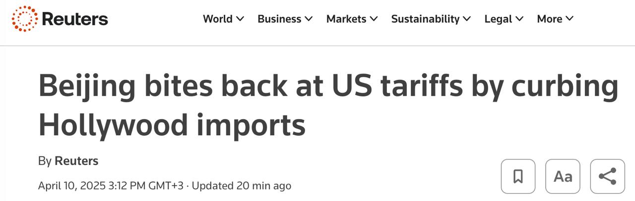 Китай повідомив, що "негайно" скорочує імпорт голлівудських фільмів у відповідь на введені Трампом мита, передає Reuters.