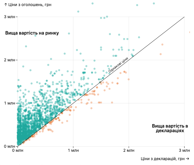 Це може свідчити про розрахунки в таких угодах готівкою, умисне приховування реальної вартості покупок для уникнення оподаткування, приховування нелегальних доходів і намагання “підлаштувати” спосіб життя до рівня офіційних доходів.