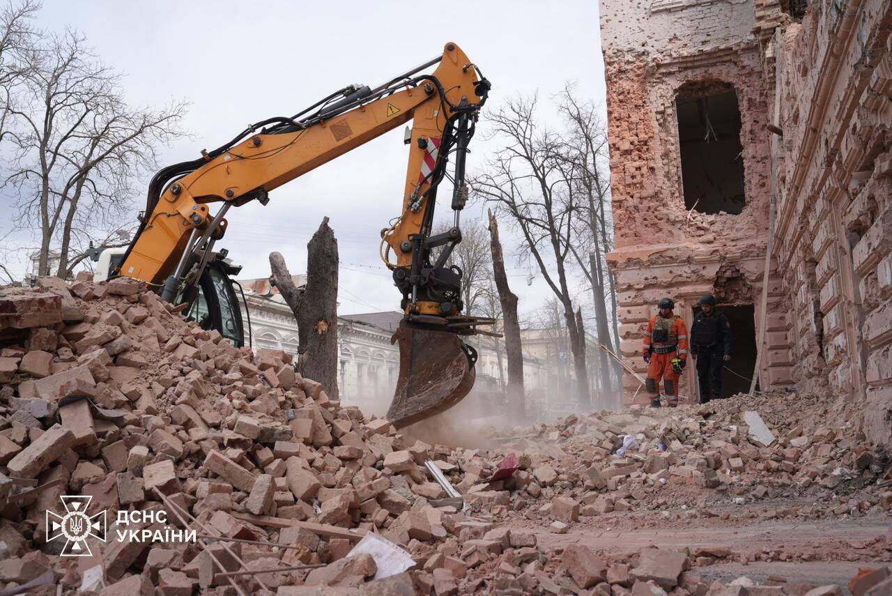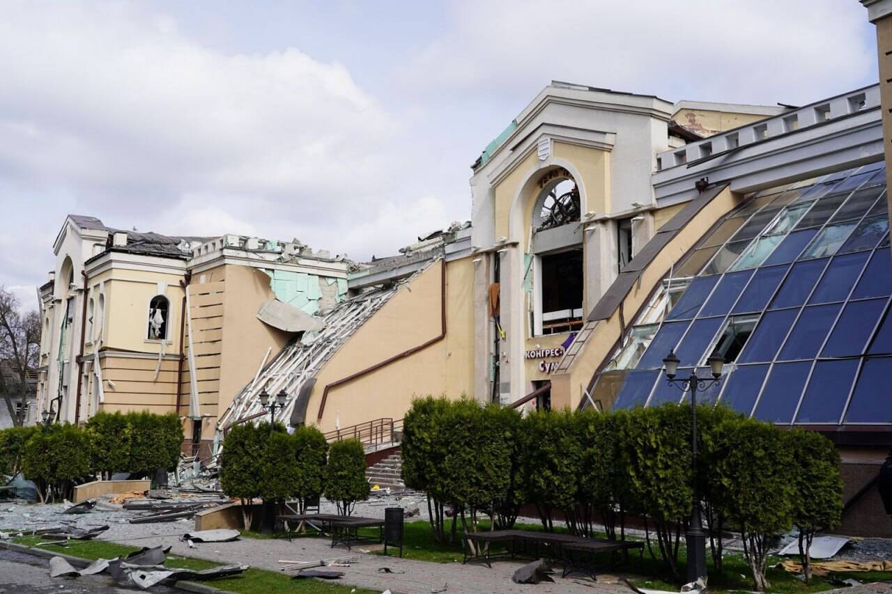 Президент Володимир Зеленський опублікував нові кадри масштабних руйнувань у центрі Сум, куди 13 квітня влучили російські балістичні ракети.