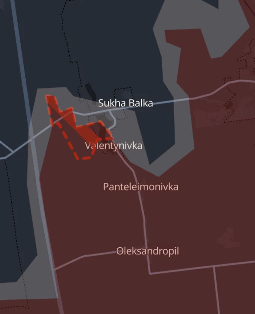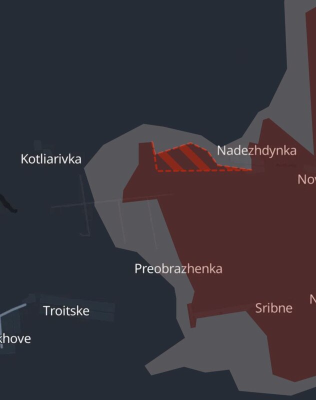 Російська армія просунулася біля Надіївки (західний край виступу, південніше від Покровська) і в районі Сухої Балки (південніше від Торецька).