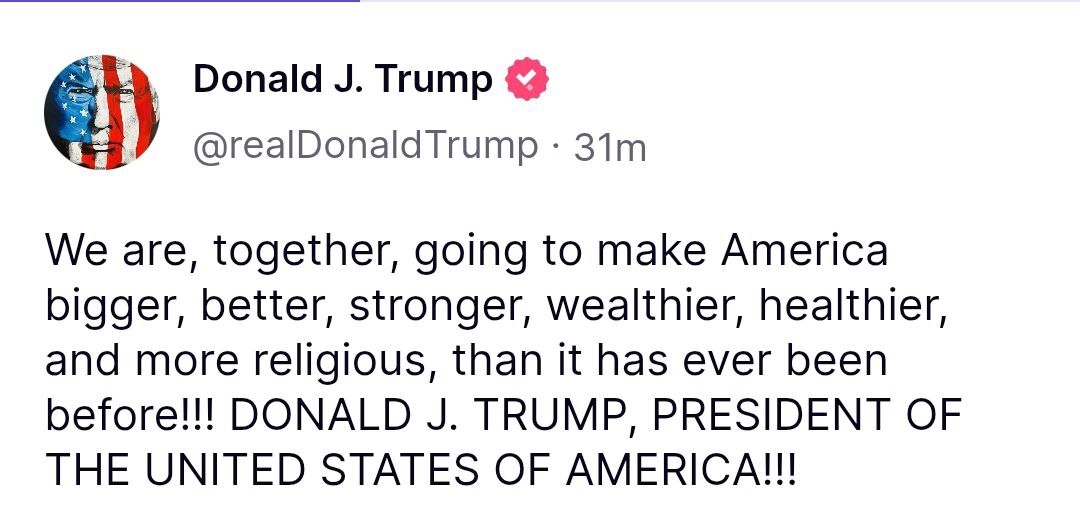 Дональд Трамп вкотре зробив гучну заяву, пообіцявши, що під його керівництвом США стануть «більшими, кращими, сильнішими, багатшими, здоровішими та релігійнішими, ніж будь-коли раніше».