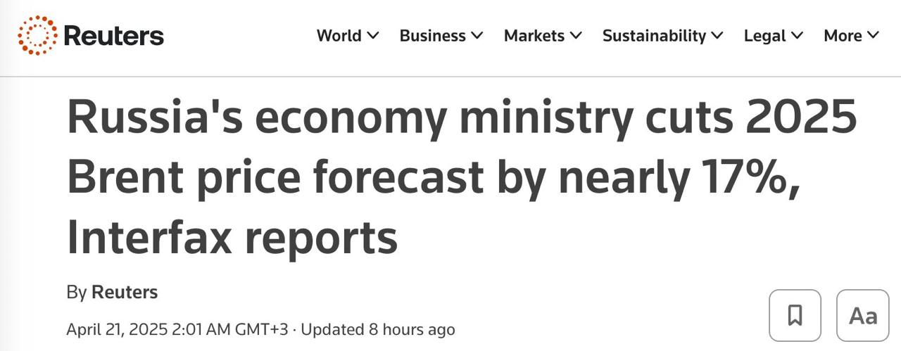 РФ знизила свій прогноз вартості нафти марки Brent, - Reuters