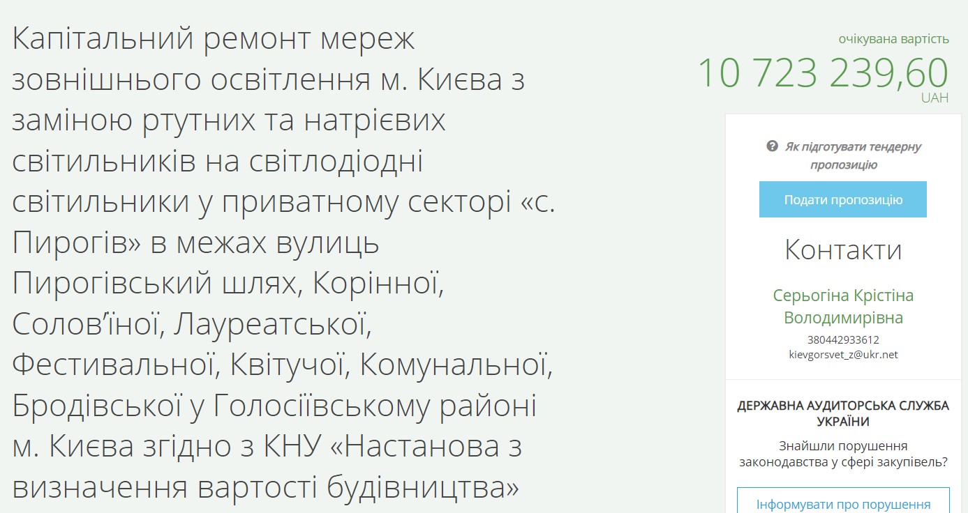 Всі ці тендери вже завершено. Проте легко можна знайти тендери, на які КП "Київміськсвітло" ще активно приймає заявки.