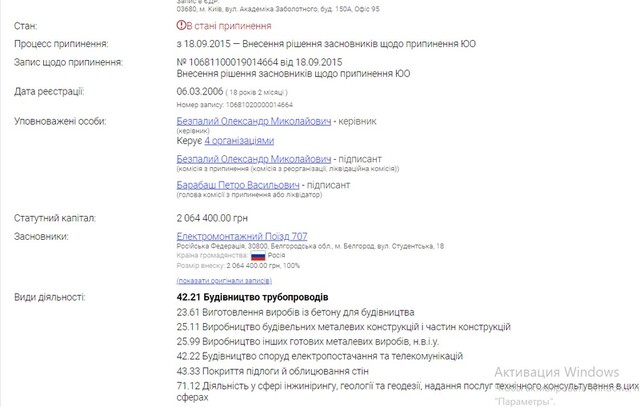 Директором та бенефіціаром якого є Безпалий Олександр Миколайович — власник кількох підприємств, засновниками яких були серед інших і вихідці з РФ.
