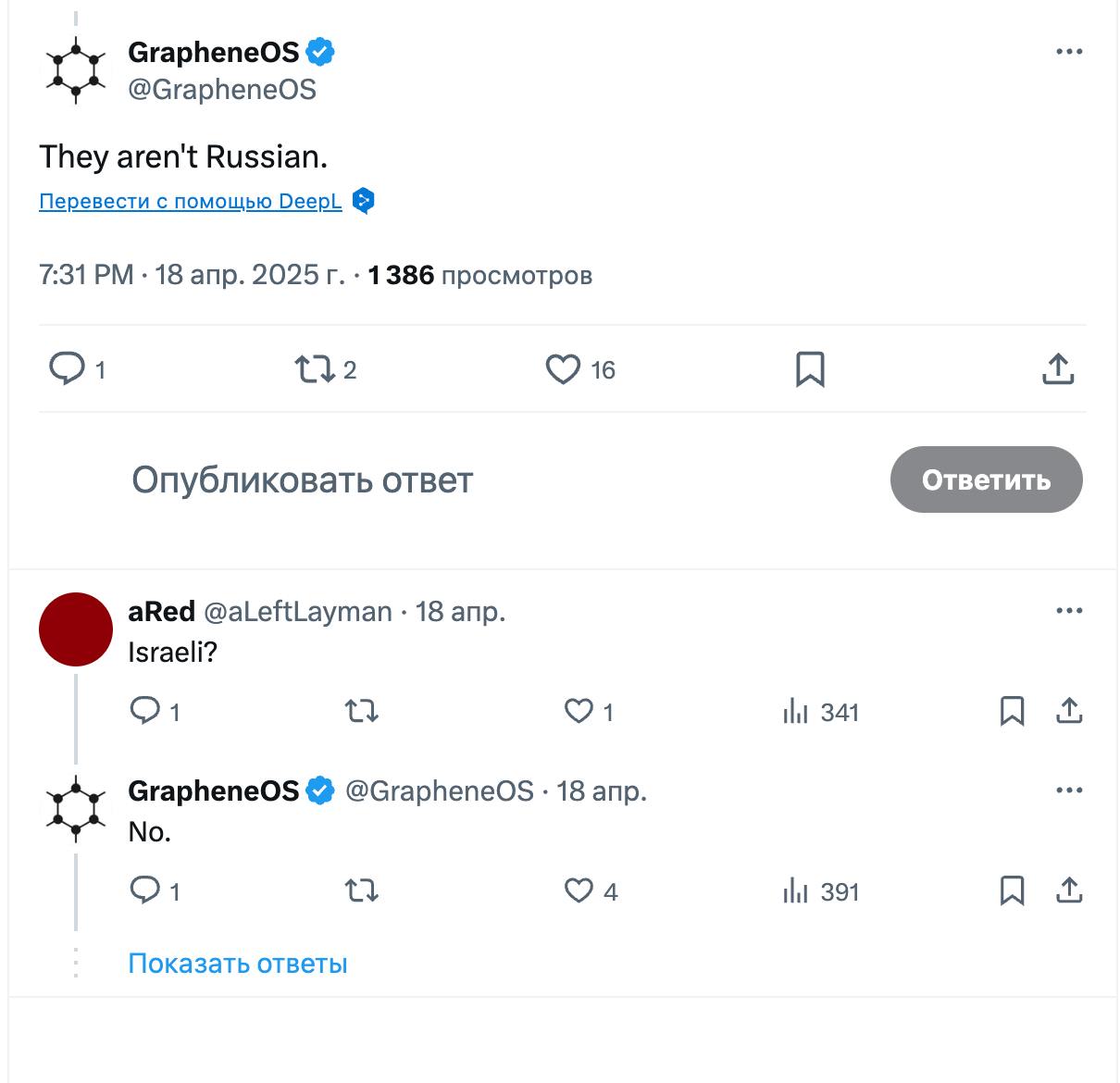 Де це сталося, не вказано, але судячи з наступної фрази, в Україні: "Ми уникали вказівки країни чи війни, щоб не втягувати GrapheneOS у дебати про примусовий призов в умовах екзистенційної оборонної війни".