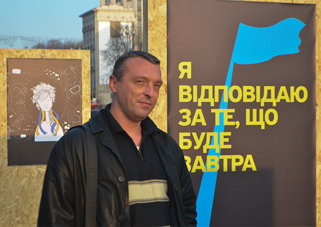 Я же начал конкретно предпринимать какие-то действия, когда в марте у нас начались захваты госучреждений. ОГА захватывали дважды. Первый раз захватили — объявили отставку губернатору и бросили. Тогда проукраинские активисты начали координироваться через социальные сети, через группы «ВКонтакте» и собираться на проукраинский митинг там же, под памятником Шевченко. Всё бы ничего, пока в один прекрасный день нам не наваляли там. Прибежали вот эти в балаклавах, самые активные, конечно, «русня». Смело могу так говорить, потому что они не знали расположения города. Их небольшая куча, может около 50 человек. Но за ними, за горизонт уходящая, толпа ликующая: «Рассия!». Ну, мы разбежались, кому-то хорошо досталось, мне только по горбу приложились. После этого, конечно, собираться мы уже не стали.