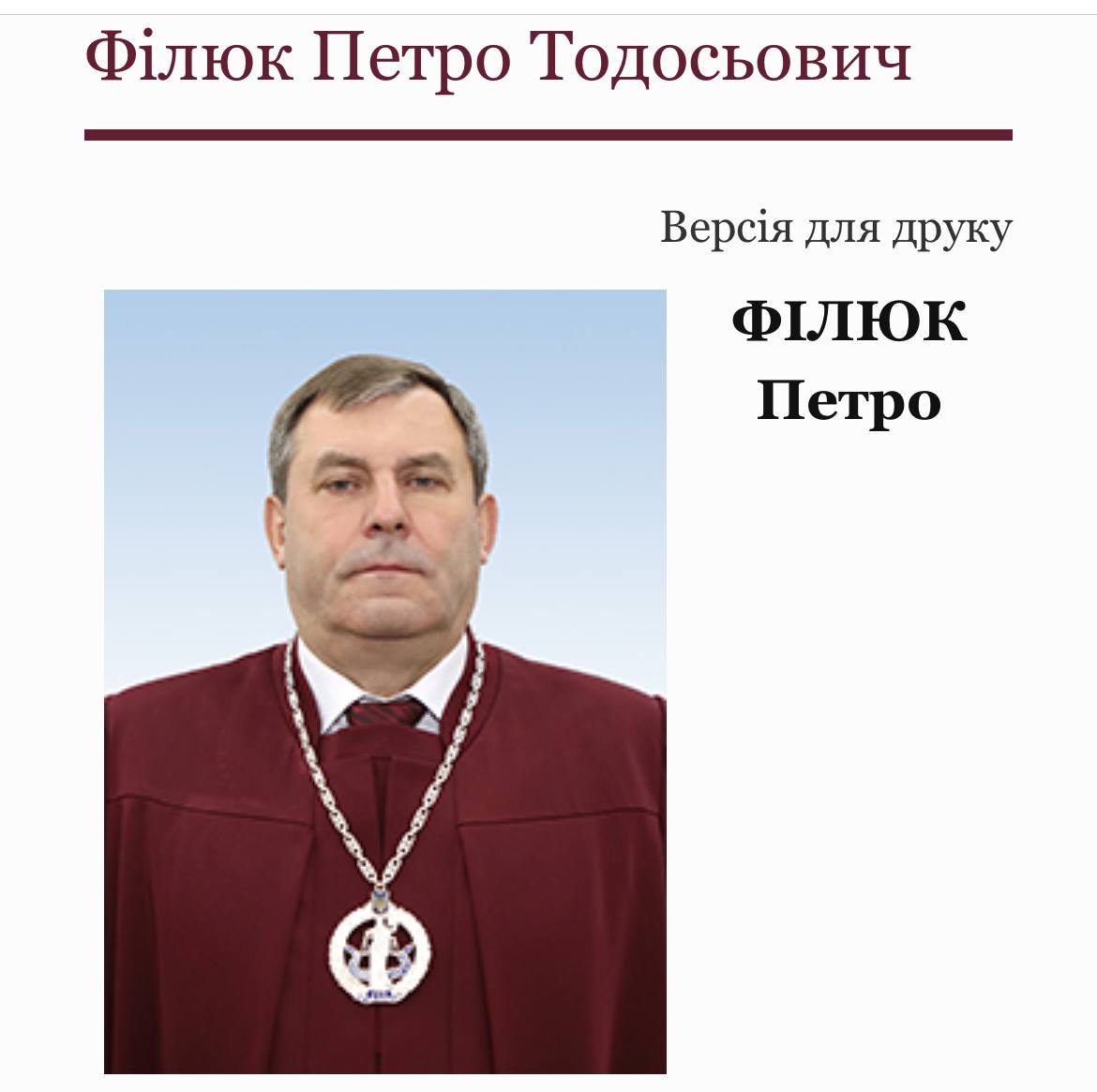 В одній із адвокатських спільнот підказали, що батько підозрюваного адвоката Андрія Філюка - це суддя Конституційного суду Петро Філюк.