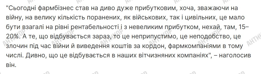 Натомість надійшла новина про те, що чистий прибуток АТ «Фармак» у 2024 році становив 1,6 мільярда гривень. І більшість цих грошей зароблено на постачаннях в армію. Дійсно, за даними порталу «Опендатабот», прибуток АТ «Фармак» за минулий рік склав 1 620 295 000 гривень, а за 2023-й – 1 556 484 000 гривень.