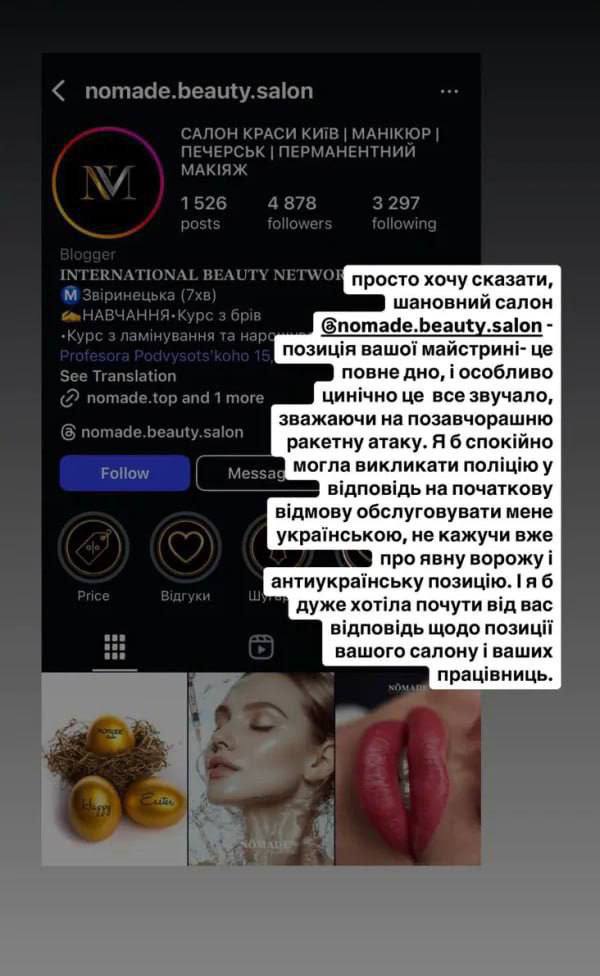 Повідомляють, що клієнтка поскаржилася на робітницю, яка відмовилася спілкуватися українською та заявила, що «говорити українською — зрада, такої нації взагалі немає».