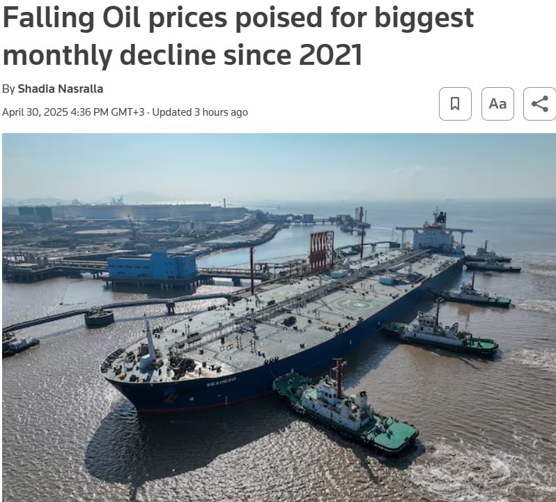 Це призведе до того, що середньомісячна ціна на нафту у квітні стане найнижчою з 2021 року.