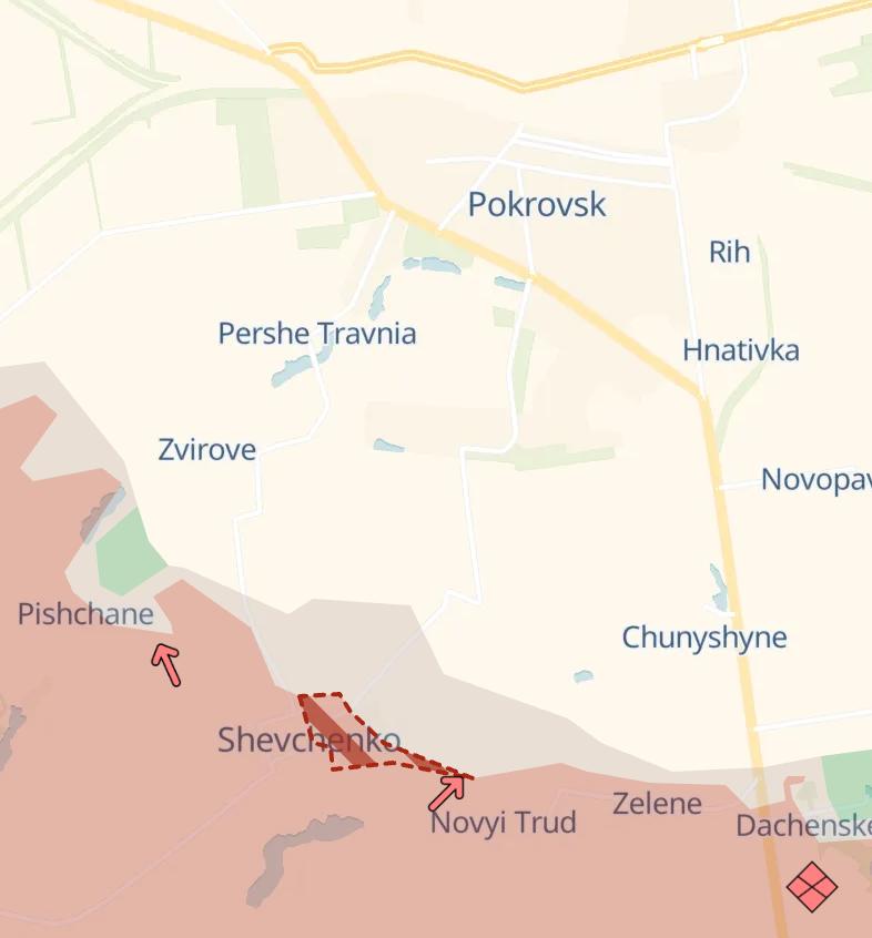 Також росіяни знову встановили контроль над частиною села Шевченко на південь від Покровська, де нещодавно ЗСУ проводили контратаку.