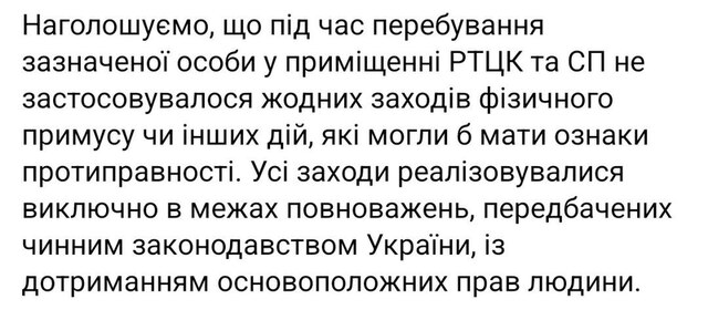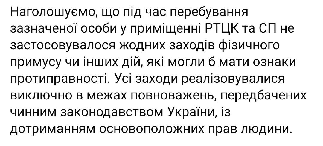 При цьому в територіальному центрі комплектування заперечують застосування до нього силових заходів (як стверджувала дружина мобілізованого).