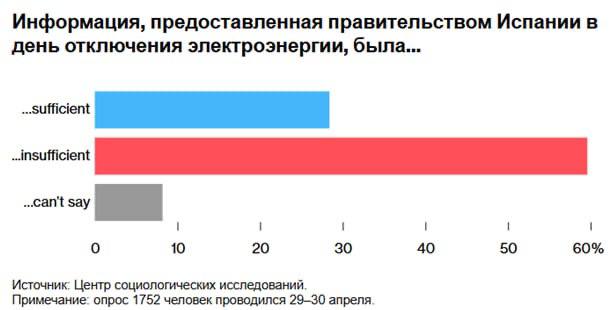 Згідно з опитуванням державного соціологічного центру CIS, 60% іспанців вважають, що уряд надав недостатньо інформації в день інциденту. Це вдвічі більше, ніж кількість тих, хто оцінив дії влади як адекватні.