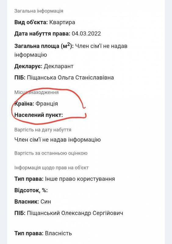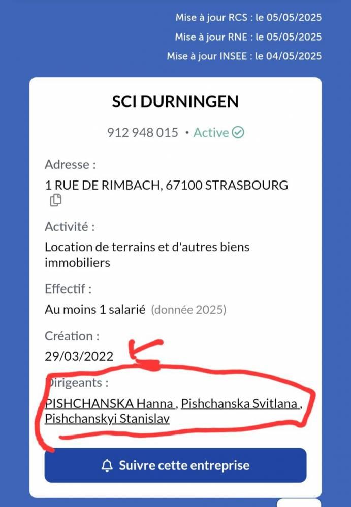 Пані Ольга вказувала свою французьку нерухомість у декларації 3 березня 2022 року. А компанія у Страсбурзі, на яку можна "переоформити" цей актив, виникла лише 29 березня. Отже, тепер нерухомість у Франції більше не впливає на декларацію Ольги Станіславівни, оскільки її оперативно переоформлюватимуть на баланс однієї з двох сімейних компаній у Страсбурзі.