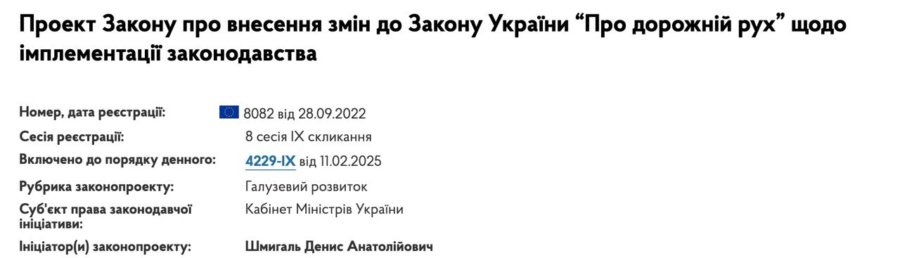 Кабінет Міністрів України подав на розгляд Верховної Ради законопроєкт №8082, яким пропонується дозволити тимчасове вилучення водійських посвідчень у чоловіків, яких суд обмежив у праві керування транспортними засобами за позовом територіального центру комплектування (ТЦК).
