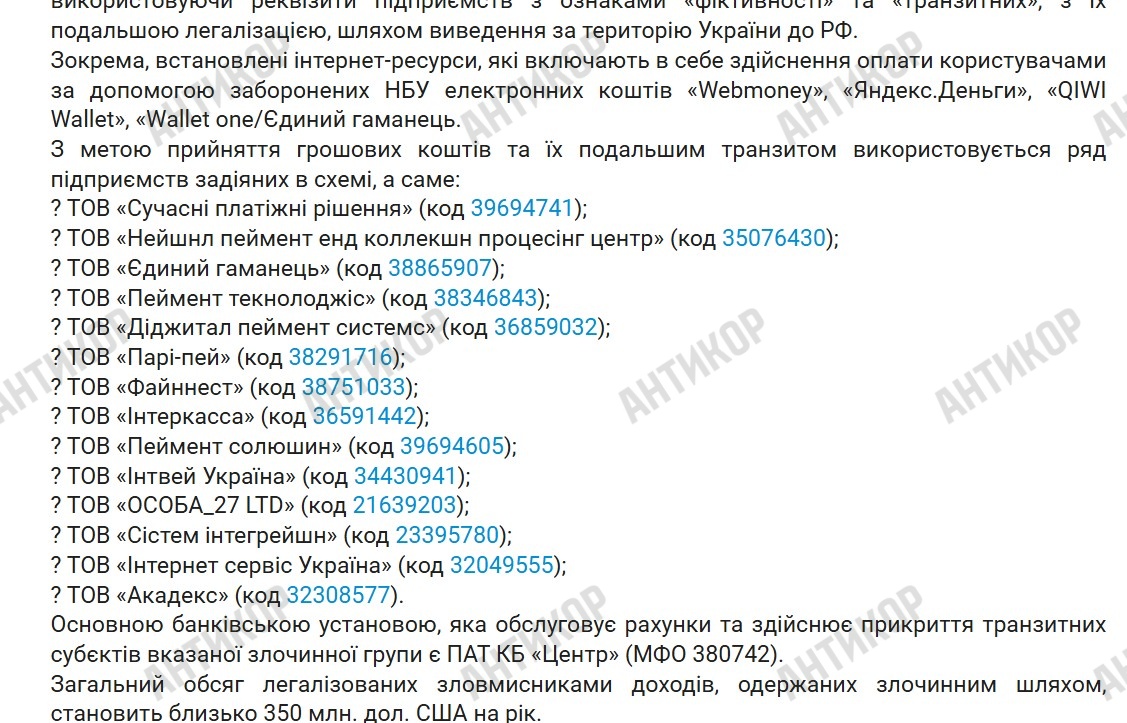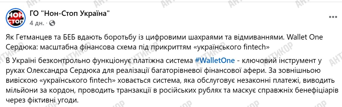 У цьому матеріалі прямо вказується, що українське відділення Wallet One досі продовжує працювати, причому схеми Олександра Сердюка не обмежуються простим ухиленням від податків – українські гроші, як і раніше, йдуть у Російську Федерацію.