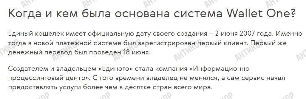 Цікаво, що на російських профільних сайтах засновником Wallet One називають російську компанію «Інформаційно-процесинговий центр».