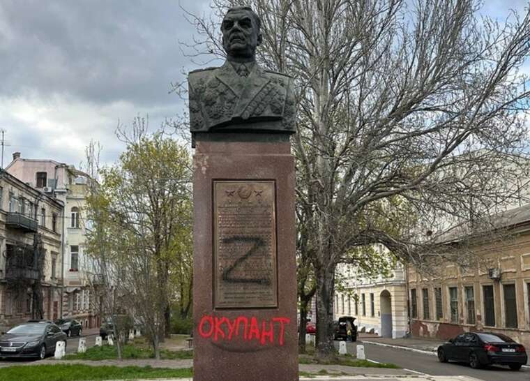 В Одесі невідомі в масках зняли табличку з пам’ятника радянському маршалу Малиновському