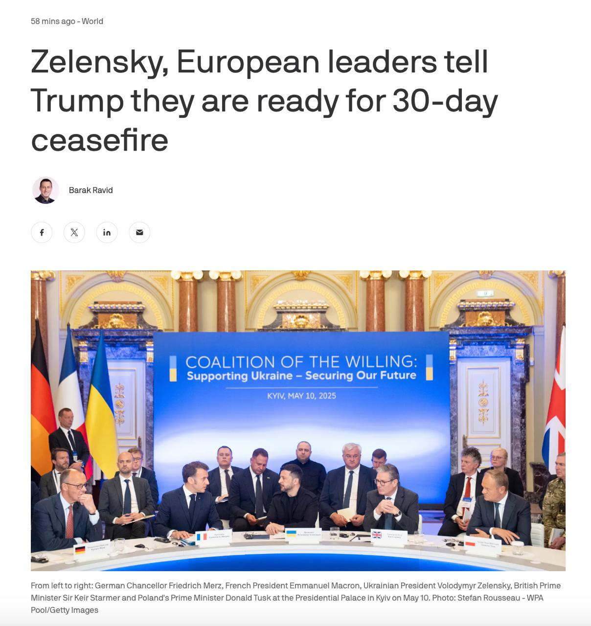 Згідно з виданням, український президент і лідери європейських країн у ході 15-хвилинної телефонної розмови повідомили Трампу, що за умови припинення вогню Україна готова розпочати прямі мирні перемовини з Росією.