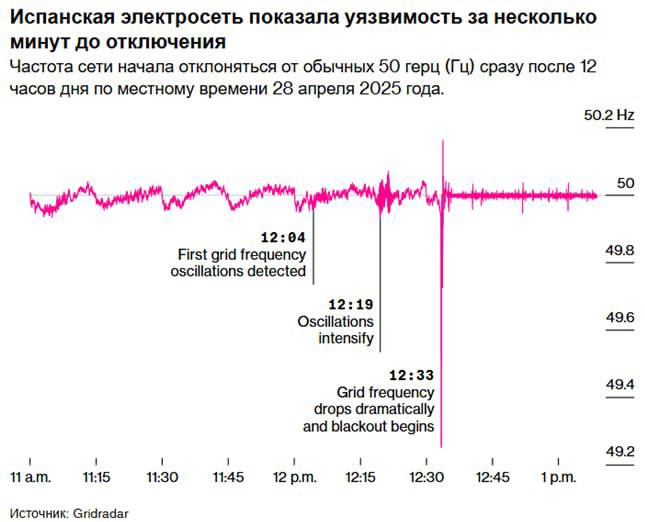Близько 2,2 ГВт потужності були відключені на півдні Іспанії менш ніж за хвилину до повного відмови електричних систем Піренейського півострова, як зазначено у попередньому звіті Entso-e, організації операторів систем передачі електроенергії в Європі.