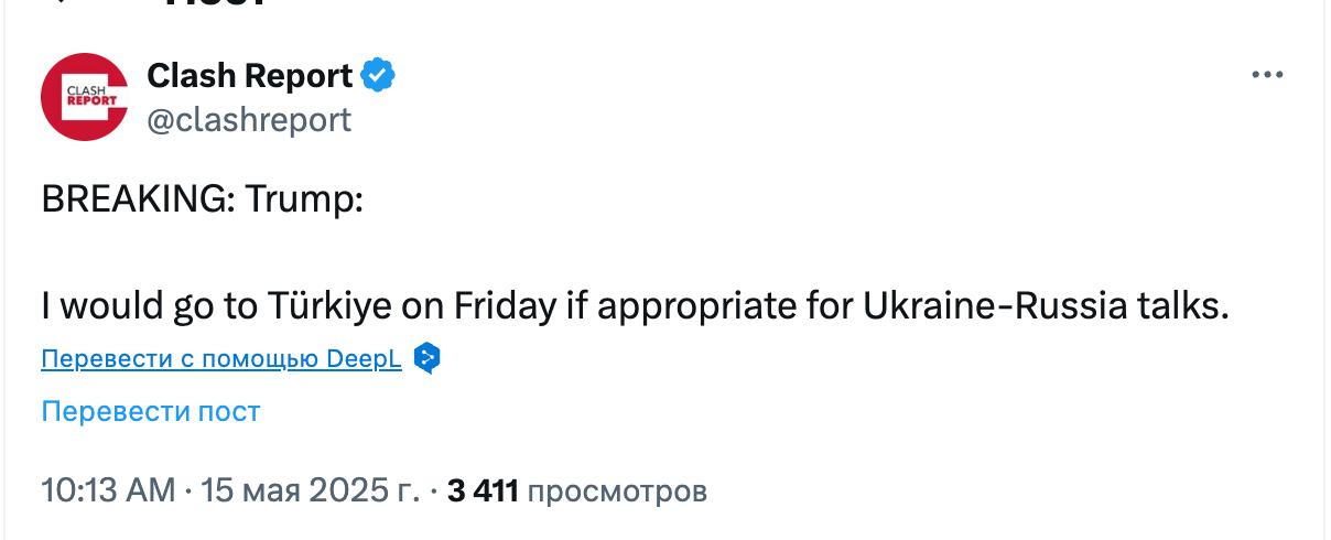 Нагадаємо, що раніше він оголосив про п’ятничну поїздку до Туреччини свого представника Віткоффа.