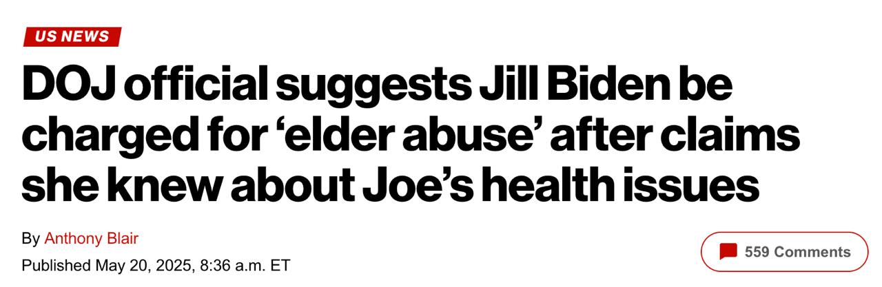 У Міністерстві юстиції США запропонували пред’явити Джилл Байден кримінальні звинувачення в «жорстокому поводженні з літніми людьми», оскільки її чоловік, колишній президент, хворий на рак, повідомляє New York Post.