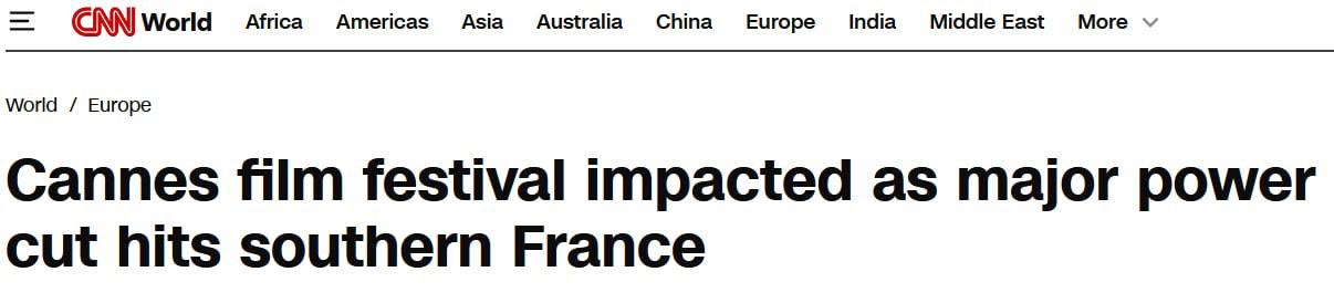 На півдні Франції стався масштабний блэкаут, який вплинув на проведення міжнародного кінофестивалю в Каннах. Близько 160 000 будинків залишилися без світла, повідомляє CNN з посиланням на компанію RTE, оператора французької електромережі.