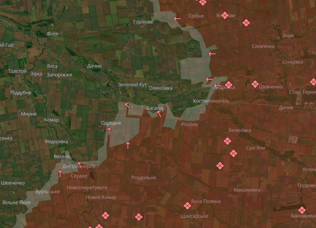 Крім цього, окупанти рухалися з раніше окупованої території до селища Богатир Донецької області. Ворог намагається штурмувати біля населеного пункту, але його все ще контролюють Сили оборони України.