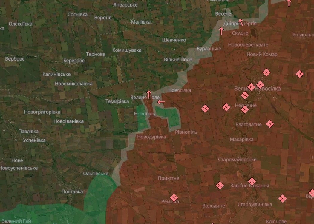 Також противники мали успіхи біля населеного пункту Зелене Поле, що частково розташований в "сірій зоні". Окупанти рухаються до селища через Новопіль, який контролюють ЗСУ.