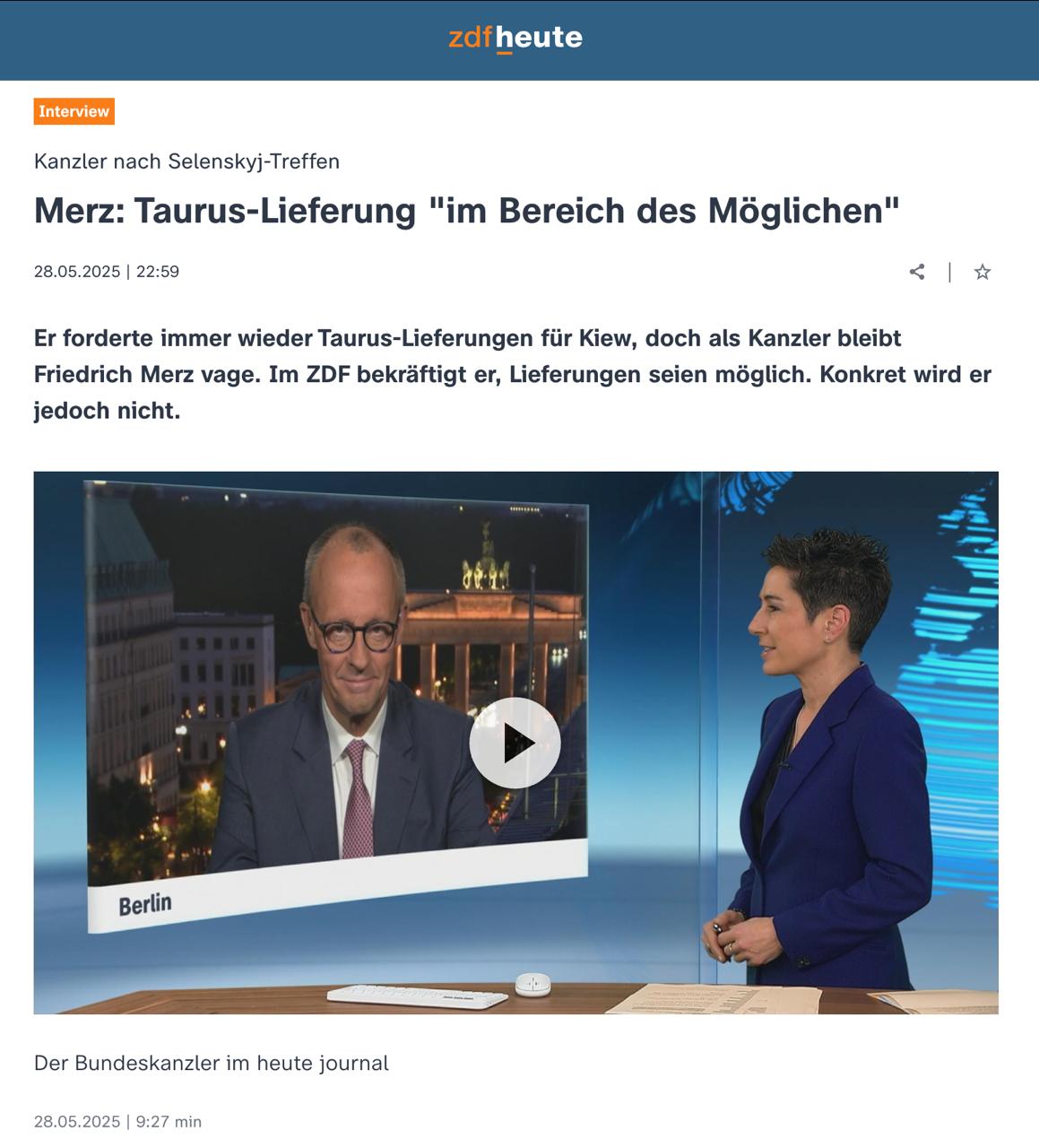 "Звісно, це в межах можливого", – сказав канцлер в ефірі телеканалу ZDF у відповідь на запитання ведучого про Taurus.