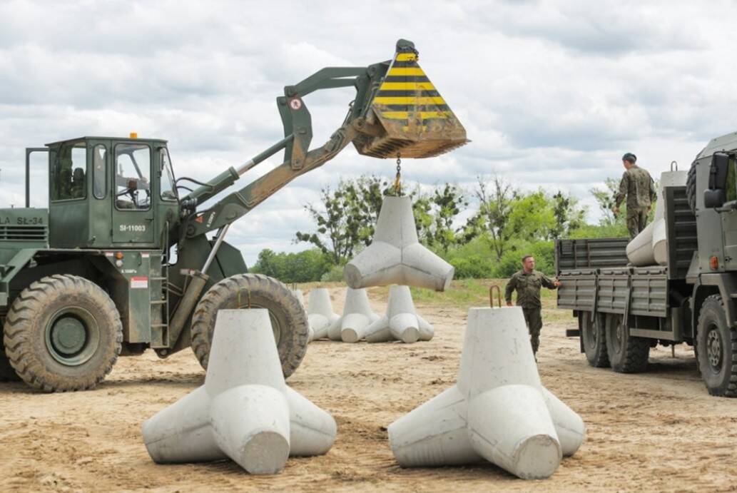 Як повідомляють місцеві медіа та військові джерела, інженерні підрозділи ЗС Польщі активно риють окопи, облаштовують бліндажі, встановлюють бетонні загородження та протитанкові їжаки.