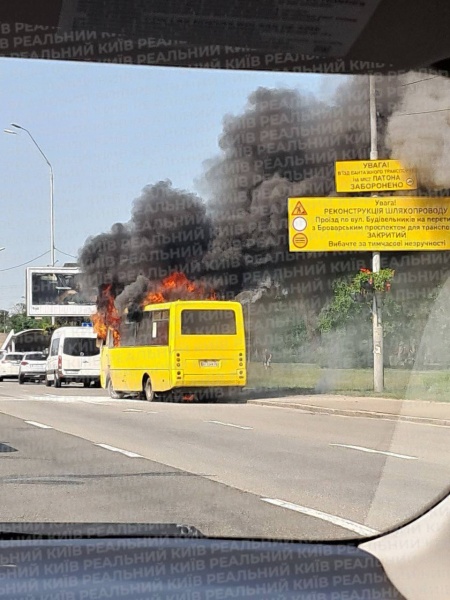У цей час місцеві Telegram-канали поширюють фото і відео з місця події. На них видно, що маршрутка стоїть вздовж дороги і горить. Вона практично повністю вигоріла.