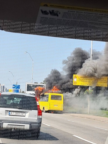 Сьогодні вдень у Києві, неподалік від станції метро "Лісова", загорілося маршрутне таксі.