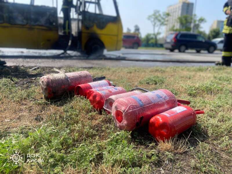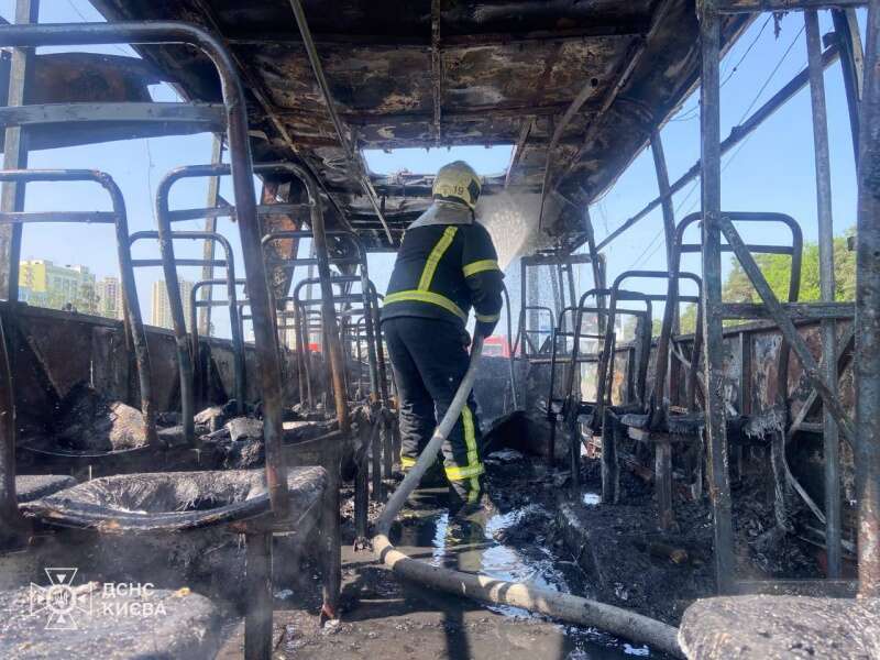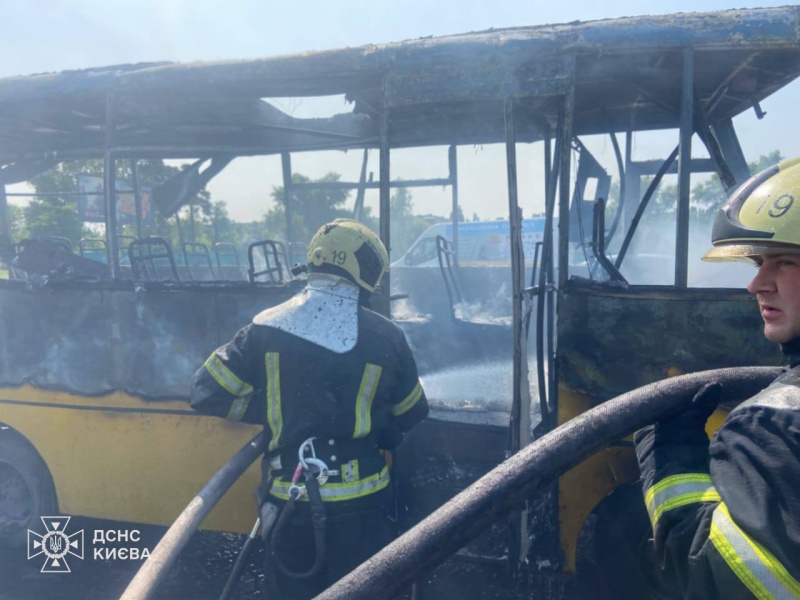У Києві біля метро «Лісова» майже дотла вигоріла маршрутка