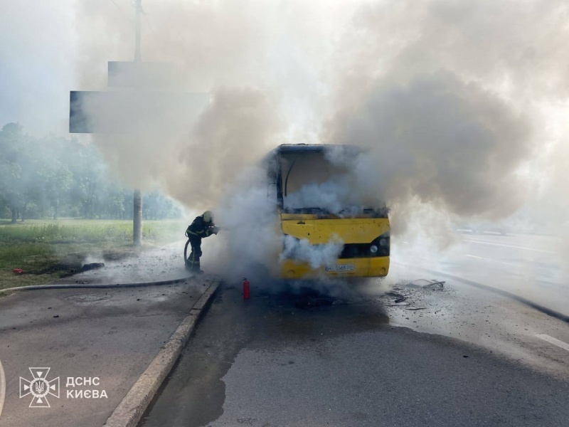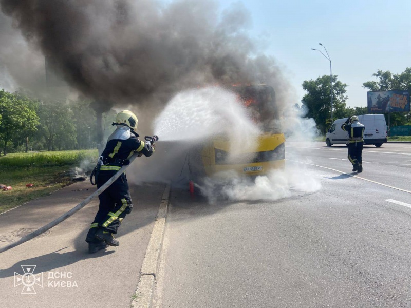 ДСНС Києва також розмістила фотографії з гасіння пожежі в маршрутному таксі.