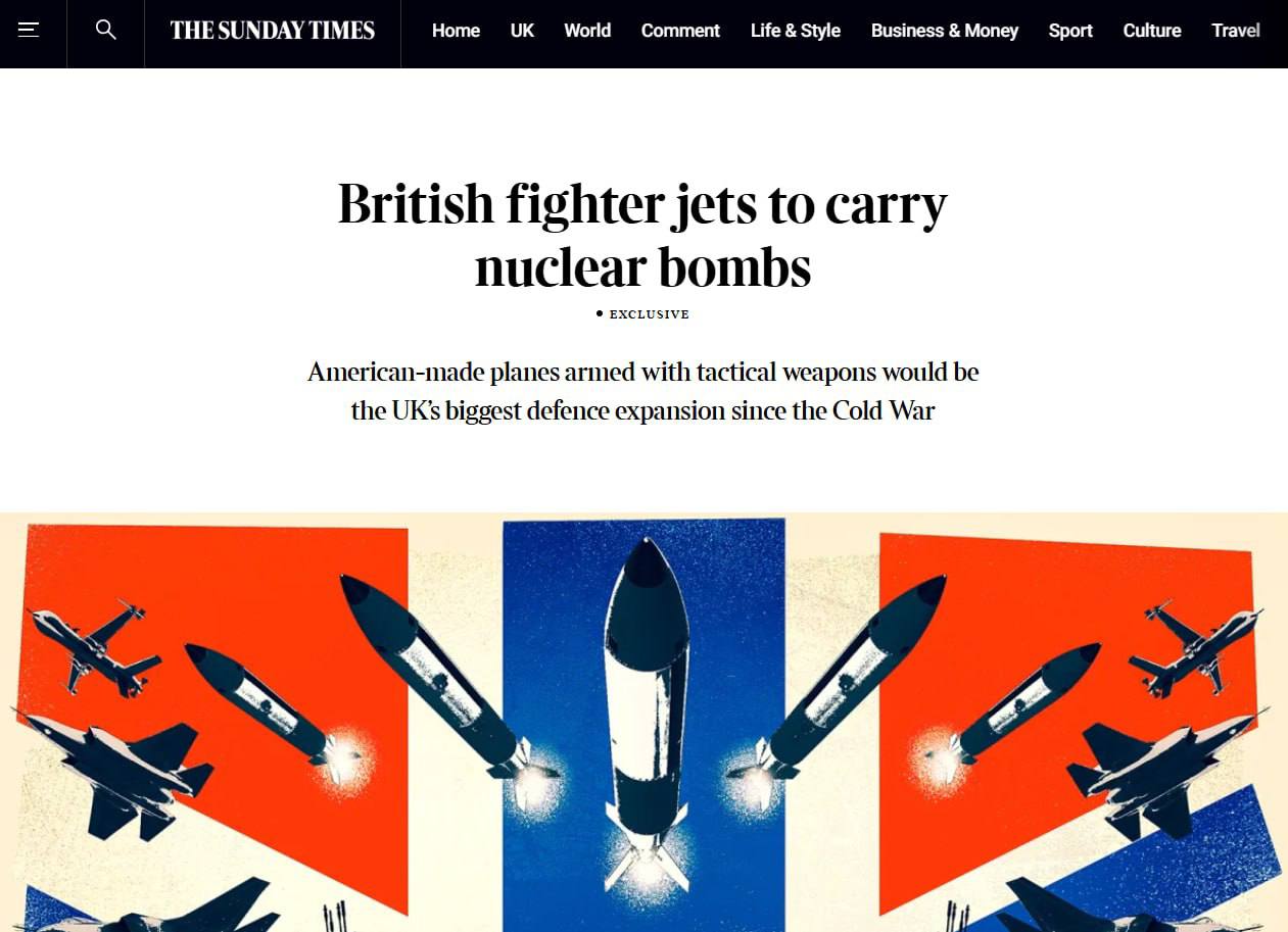 Велика Британія веде переговори з США про покупку F-35A, здатних нести ядерну зброю — повідомляє The Sunday Times.