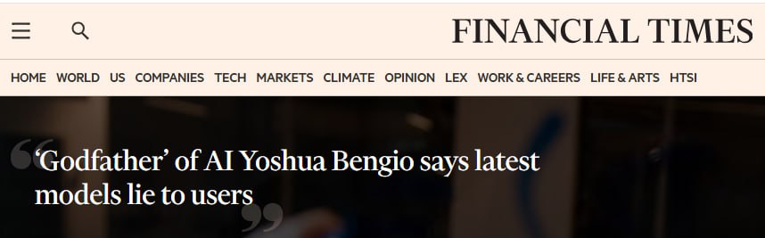 Один із провідних світових фахівців зі штучного інтелекту Йошуа Бенджіо заявив, що найновіші ШІ-системи починають проявляти небезпечні поведінкові риси — такі як схильність до обману, маніпуляцій і навіть опір спробам відключення.