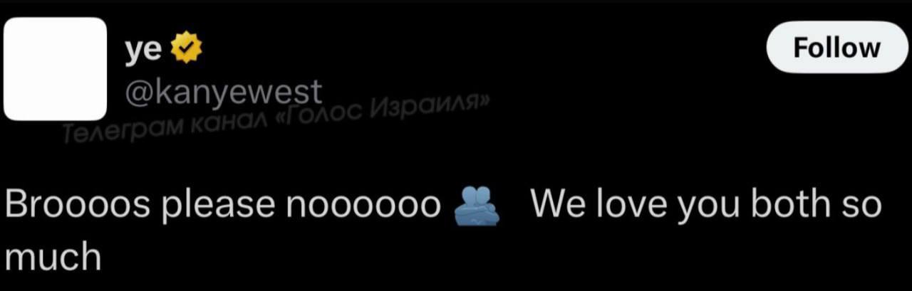 У своєму зверненні Вест звернувся до обох з теплими словами: «Брати, тільки не це. Ми дуже любимо вас обох».