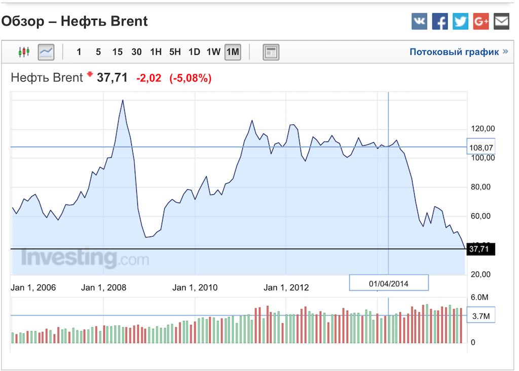 На минувшей неделе при закрытии биржевых торгов цена на нефть опустилась ниже 38 долларов за баррель.